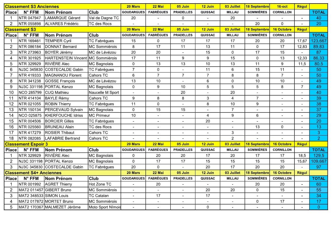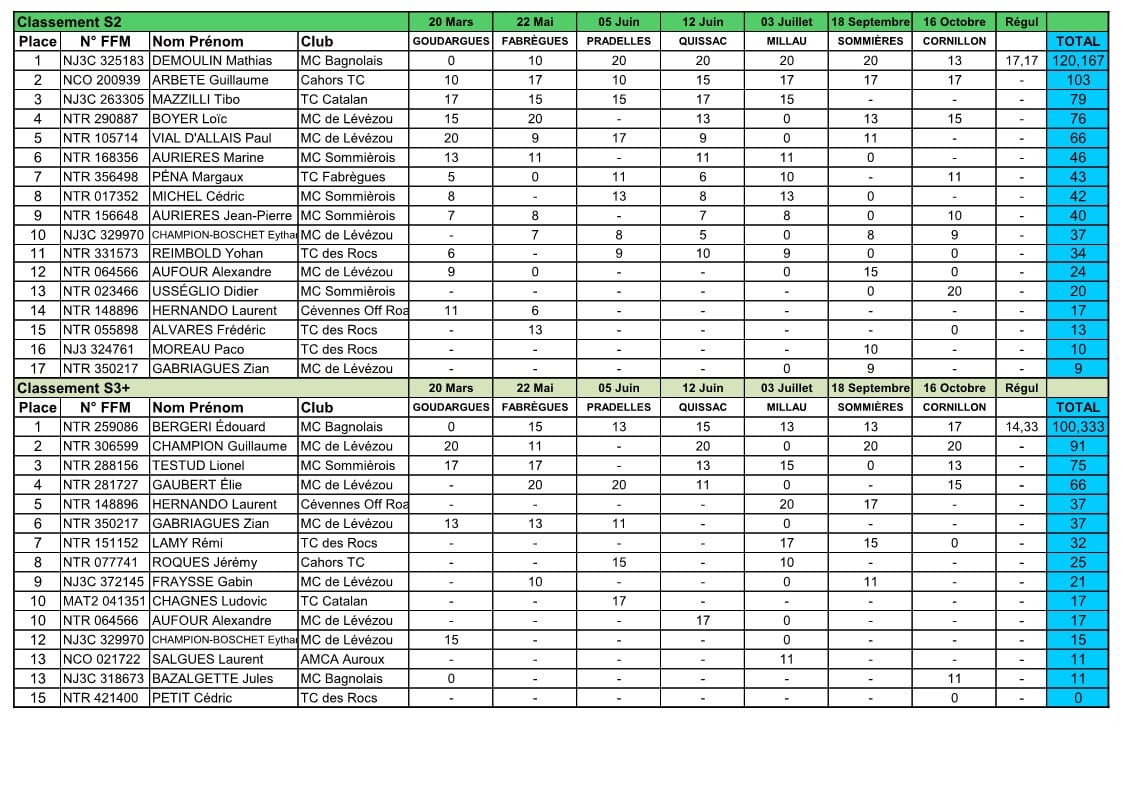 Le championnat de ligue d’Occitanie a vécu sa conclusion à Cornillon mi octobre. Voici donc les classements complets au terme de cette épreuve :