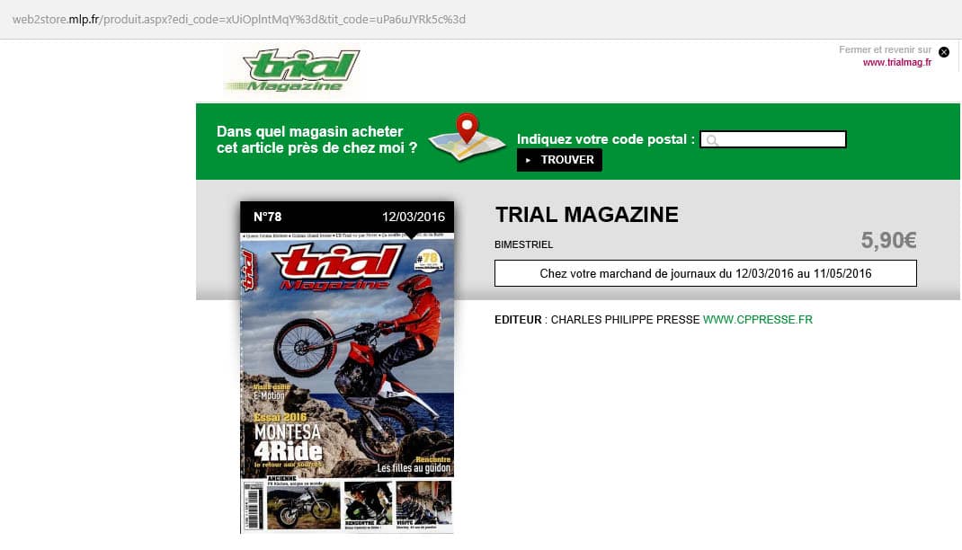 Si vous cherchez dans quel magasin acheter Trial Magazine près de chez vous, il existe un site internet qui vous renseigne. Cliquez ici pour trouver les points de vente les plus proches de chez vous !