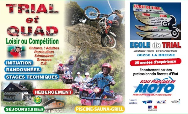 L’hiver semble enfin terminé et l’Ecole ouvrira ses portes ce lundi 15 avril pour les vacances de printemps. Au programme une trentaine de formules trial et quad vous sont proposées cette année, adaptées à tout public et tout budget, pour débutant (à partir de 6 ans) ou plus confirmé. Du cours particulier aux forfaits groupes, week-ends tout compris, en initiation, randos, stages week-end et semaine, toutes les activités sont encadrées par des professionnels diplômés.