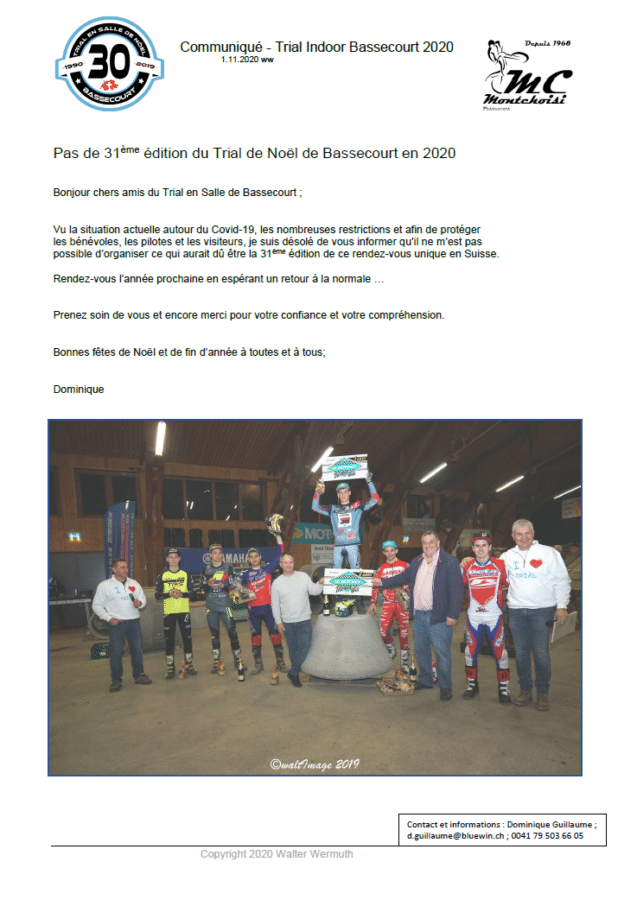 Comme on pouvait s’y attendre, suite aux récentes dispositions du gouvernement pour lutter contre la pandémie, nombreux sont les clubs à annoncer l’annulation de leur prochaine organisation.