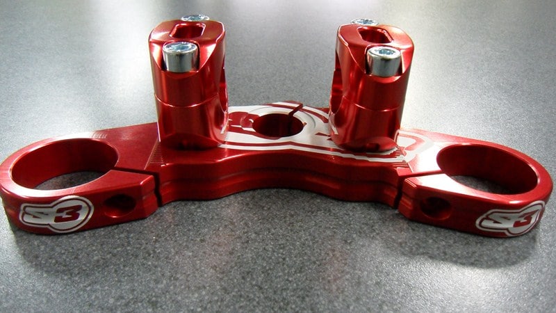 Pontets de guidon + Té supérieur S3 en Ergal 7075T6 réglable multipositions anodisé Rouge ou Noir pour GAS GAS PRO Fourche MARZOCCHI D.40.