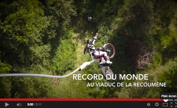 … Il ne fait pas semblant ! Kenny Thomas, 19 ans, s’est élancé le 7 juin dernier du viaduc de la Recoumène en double Back-Flip en collaboration avec la société Cap Liberty, pour un record du monde de saut à moto. Mieux que des mots, des vidéos !