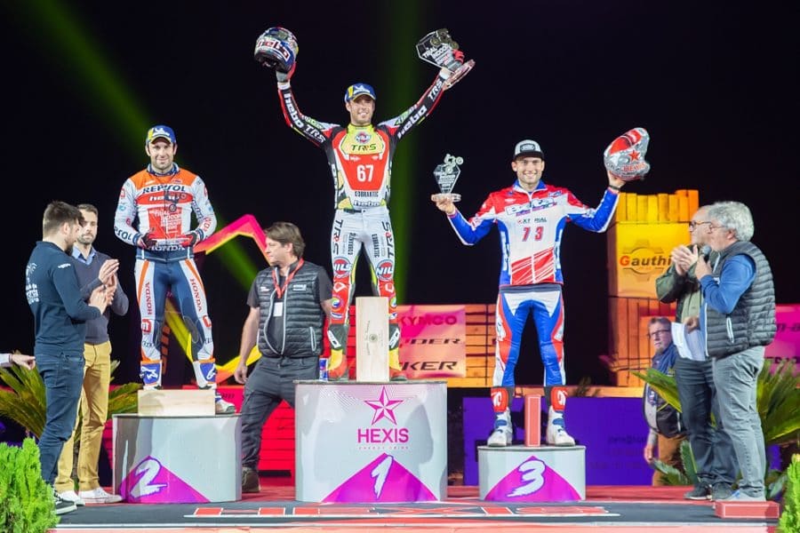 Adam Raga s’offre ainsi un premier succès cette saison en France avec pour objectif 2020 détrôner le roi Toni Bou (ESP-Montesa). Auteur d’un premier tour gagnant avec 2 points contre 5, Raga va enfoncer le clou dans la seconde partie de soirée pour finalement conserver l’avantage de trois points sur son compatriote. Leader du classement après son passage victorieux du 2e tours, le Français Benoit Bincaz (Beta) se fera souffler la victoire et la seconde place par le duo espagnol qui affichera jusqu’à 10 zéros successifs dans le second tour. Le tricolore monte sur la 3ème marche du podium avec le sentiment du devoir accompli. Lucas Petrella (ITA-Beta) arrache la 4ème place pour 10 points à Toby Martyn (GBR-Beta) 5ème, alors que l’Américain Pat Smage (USA-Sherco) complète le classement après un parcours réussi.