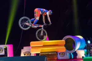 Nicolas Vallée dans son show Vélo Trial s’est montré particulièrement à son aise à l’Arkéa Arena, allant jusqu’à affronter Adam Raga dans un duel de tous les instants avec un écart d’1.215 seconde seulement à l’avantage de l’Espagnol.