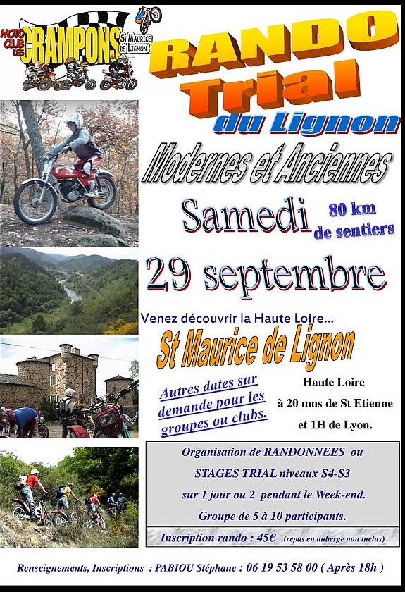 Ça se déroulera lieu à Saint Maurice de Lignon (43) : RV au terrain de trial (fléchage en place) à 9 H.
