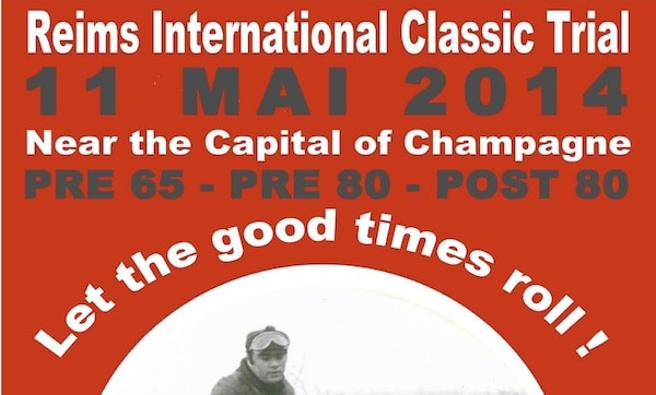 L’Union Motocycliste de la Marne vous attend sur les coteaux champenois le dimanche 11 mai 2014 pour la troisième édition du Reims International Classic Trial. Belles machines, superbe terrain aux possibilités innombrables, zones adaptées aux anciennes, accueil chaleureux, ambiance conviviale, soleil assuré (si, si !), et boisson locale mondialement réputée font de cette épreuve un must pour les amateurs d’anciennes !
