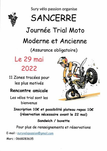 Dimanche prochain un évènement dans le Cher(18) SANCERRE pas très loin de l’IDF, plus précisément à l’Orme aux loups. Uune journée de trial organisé par le Sury Vélo Passion dans les zones que les anciens connaissent bien…