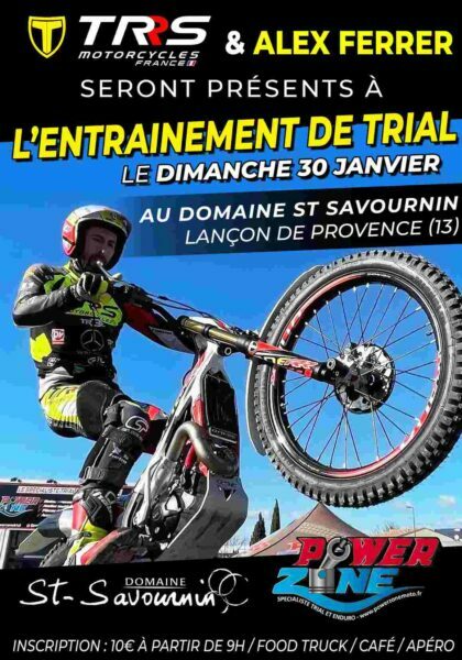 Dimanche 30 Janvier TRIAL AMICAL / JOURNÉE ENTRAINEMENTCe dimanche, PowerZone et le Domaine St-Savournin organisent une journée Trial à Lançon de Provence (13) ! Venez faire un coup de moto… Profitez du soleil et des zones dans un cadre magique !!