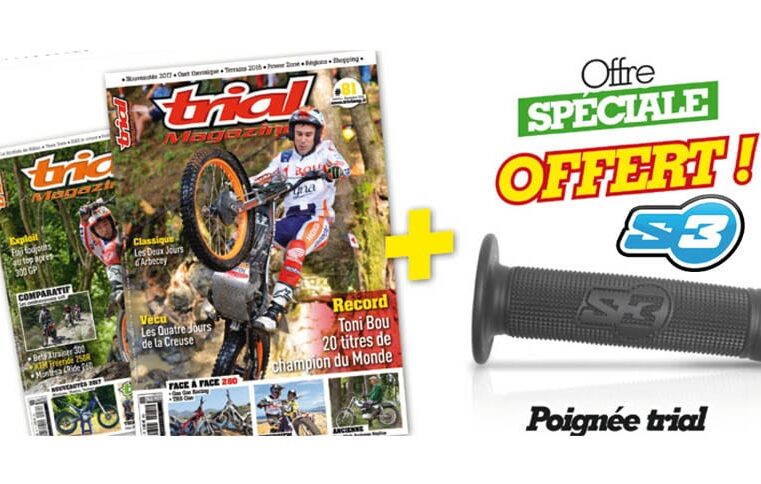 Abonnez-vous pour 1 an à Trial Magazine et recevez en cadeau 2 poignées Trial S3 d’une valeur de 9,90€. Cliquez...