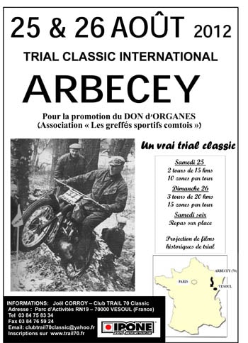 Organisé par Joël CORROY et le Club TRAIL 70 Classic, le trial international d’ARBECEY en Haute-Saône est un rendez-vous incontournable...
