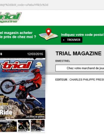 Si vous cherchez dans quel magasin acheter Trial Magazine près de chez vous, il existe un site internet qui vous renseigne....