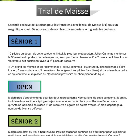 Seconde épreuve de la saison pour les franciliens avec le trial de Maisse (91) sous un magnifique soleil. De nouveaux,...