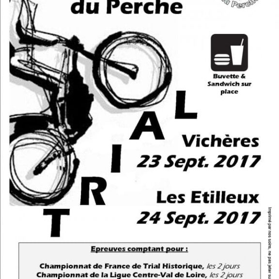 Le Club Motocycliste du Perche donne rendez-vous à tous les trialistes, les 23 et 24 septembre prochain, à Vichères (28)...