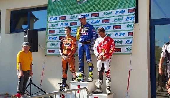 Revest-les-Eaux, dernière étape du championnat de France de trial 2015, Alex Ferrer gagne la course expert devant Loris Gubian et Benoît...