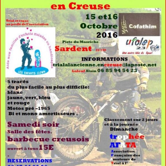 La seconde manche du Trophée AFATA 2016/17 aura lieu à Sardent (23) dans le cadre des 2 jours de Trial...
