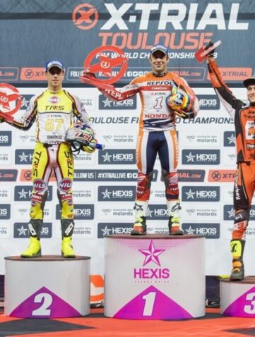 Podium X-Trial de Paris : Busto – Raga – Fuji. A 38 ans, le japonais est encore sur le podium...