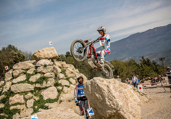 Un petit zoom sur Adam Raga lors du trial de Cal Rosal comptant pour le championnat d’Espagne de trial 2015....