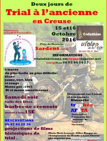 La seconde manche du Trophée AFATA 2016/17 aura lieu à Sardent (23) dans le cadre des 2 jours de Trial...