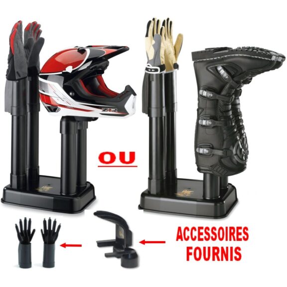 Bien pensé, ce séchoir spécial équipements motos, qui fonctionne sur 220 V, vous permet de rapidement faire sécher vos fringues...