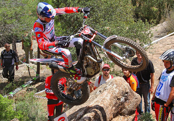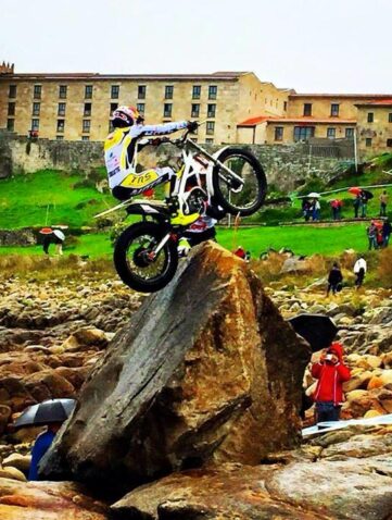 On retrouve le pilote Adam Raga dans 4 passages de zones lors du trial de Baiona comptant pour le Championnat...