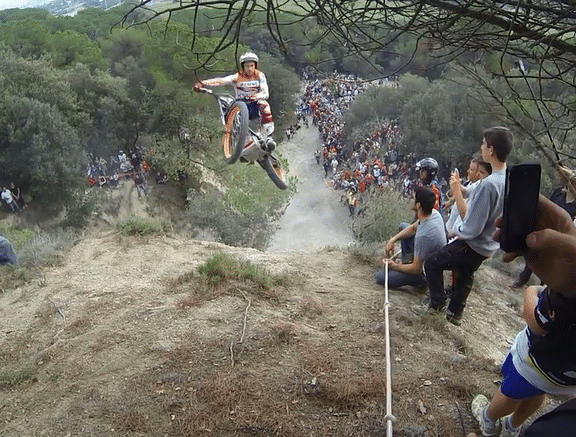 On retrouve le pilote Adam Raga dans 4 passages de zones lors du trial de Baiona comptant pour le Championnat...