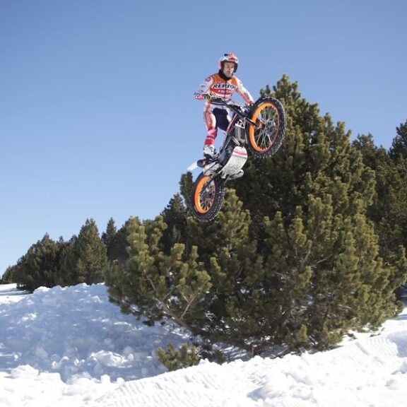Toni Bou se détend au milieu de magnifiques paysages enneigés....