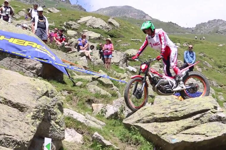 On retrouve le pilote Adam Raga dans 4 passages de zones lors du trial de Baiona comptant pour le Championnat...