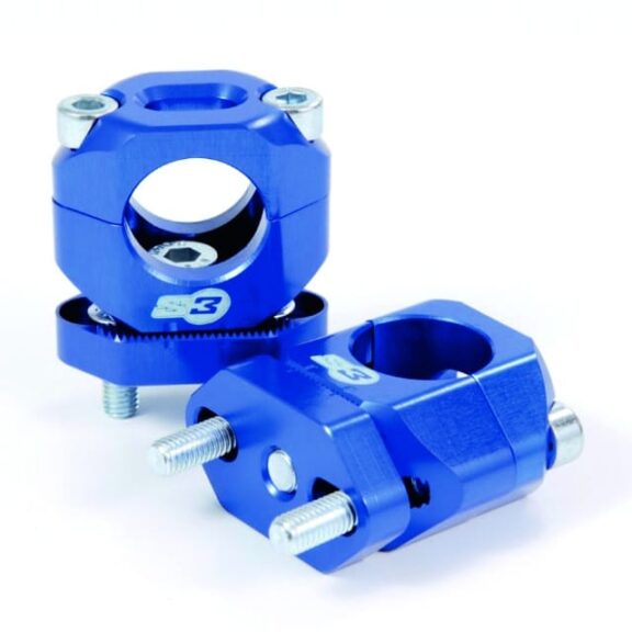 Plus haute que les celles d’origine, les brides de guidon trial S3, sont réglables grâce à un systeme de précision...