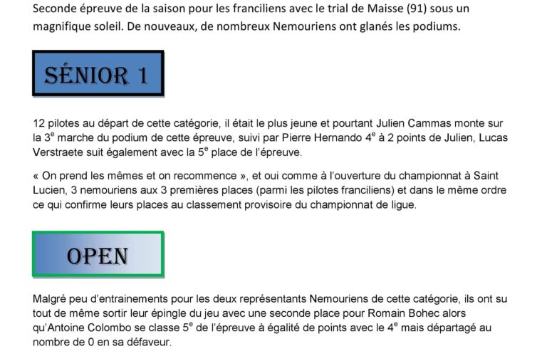 Seconde épreuve de la saison pour les franciliens avec le trial de Maisse (91) sous un magnifique soleil. De nouveaux,...