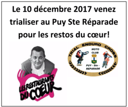 Le 10 décembre 2017 venez trialiser pour les Restos du Cœur ! En hommage à Coluche et dans le cadre...