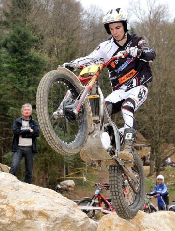 Un petit zoom sur Adam Raga lors du trial de Cal Rosal comptant pour le championnat d’Espagne de trial 2015....