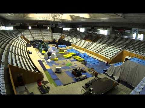 Monter une piste de trial indoor, c’est du boulot… Voici résumé en 1 minute 30 le montage du trial indoor...