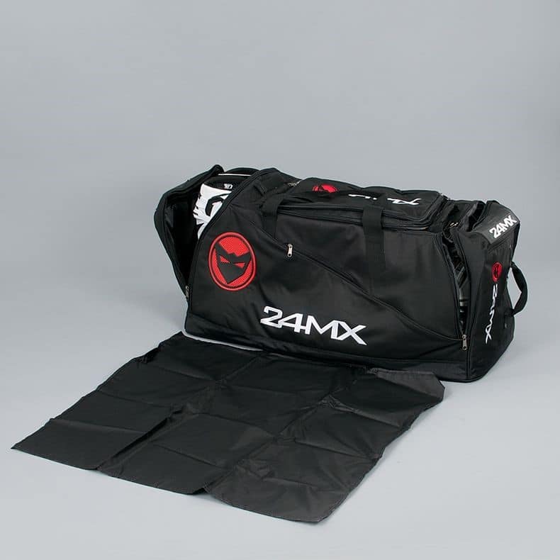 Toutes vos petites affaires, mais aussi vos pieds au sec ! Dans ce sac All-in-one 24 Mx, vous pourrez bien sûr loger votre équipement au grand complet (compartiments bottes / casque de chaque côté plus huit poches et compartiments divers), mais grâce à son tapis déroulant et rétractable, vous pourrez aussi changer de tenue sans vous mouiller les pieds les jours de pluie. Grâce à son double compartiment avec filet en maille, vos affaires humides seront en plus aérées, mais à ce prix, ça ne vous dispense quand même pas de faire votre lessive. Pas de sectarisme : si c’est bien pour les crossmen, c’est bien aussi pour nous !