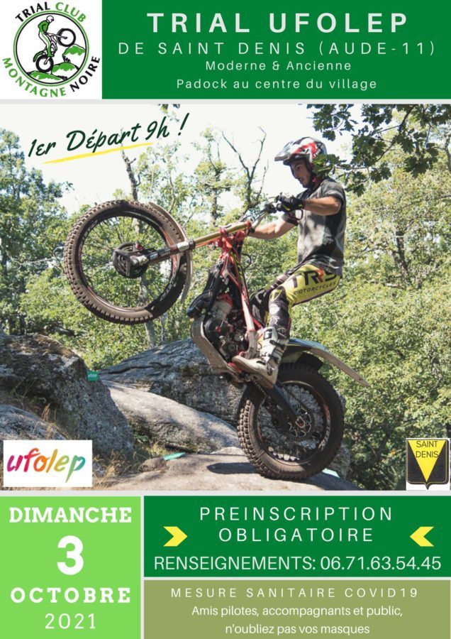 Le trial Ufolep organisé par le TC de la montagne noire arrive à TRES grands pas. En effet c’est dimanche, oui, oui dans trois jours, alors si vous souhaitez y participer, vous savez ce qu’il vous reste à faire : vous inscrire très vite !!