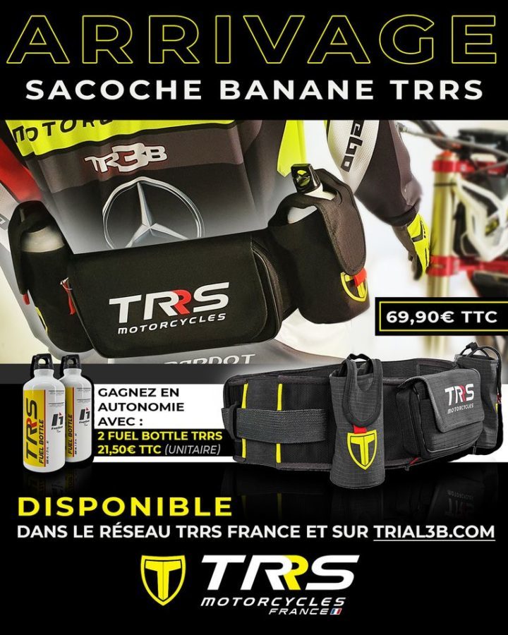 L’ami Philippe Berlatier est toujours sur le coup quand un nouveau produit rejoint son (déjà très) fourni catalogue TR3B. Aujourd’hui, il nous présente une sacoche banane siglée TRRS qui permet également d’emporter en rando deux bouteilles métalliques destinées à augmenter votre autonomie en carburant. Précieux pour éviter de vivre le coup de la panne au fond des bois…