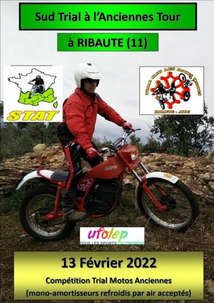 Le TCLRV (Trial Club Les Roues Verte) organise à Ribaute (11) l’ouverture du challenge STAT 2022. Ca aura lieu le 13 février sous l’égide de l’UFOLEP sur le superbe terrain du club. Terre rouge et rochers sous les pinèdes : magnifique endroit !