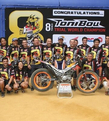Toni Bou (Repsol Honda) est devenu dimanche le premier vainqueur de huit titres en Championnat du Monde FIM de Trial,...