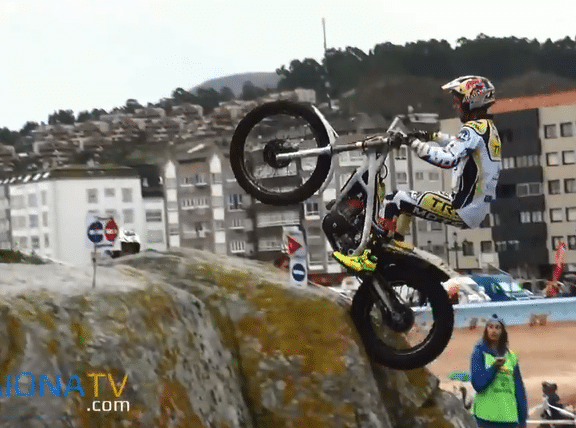 On retrouve le pilote Adam Raga dans 4 passages de zones lors du trial de Baiona comptant pour le Championnat...