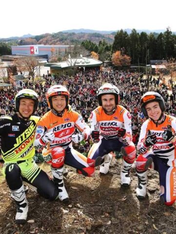 De retour au Japon, Takahisa Fujinami a ramené dans ses bagages Toni Bou et Jaime Busto pour une démonstration trial....