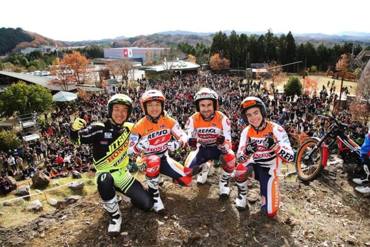 De retour au Japon, Takahisa Fujinami a ramené dans ses bagages Toni Bou et Jaime Busto pour une démonstration trial....