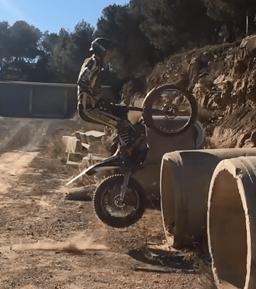 Albert Cabestany nous offre un beau passage sur la roue arrière lors de son dernier entrainement avant le trial. Adam...
