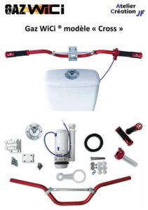 Gaz WiCi ® est un kit de transformation pour WC, qui permet de tirer la chasse d’eau des toilettes à l’aide d’une poignée de gaz de moto !