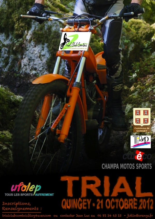Dimanche 21 octobre, le TCC (Trial Club Comtois) organise à Quingey (Doubs) un trial comptant pour le trophée des trois provinces.