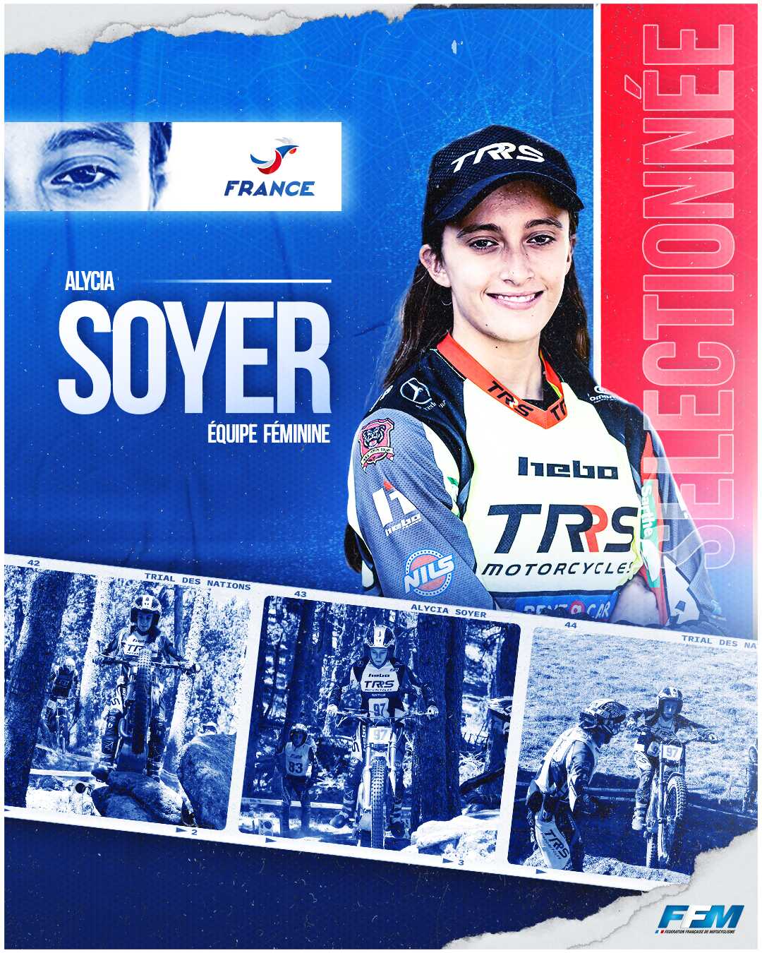 Place aux dames maintenant ! La Fédération française de Motocyclisme surprend avec une équipe extrêmement jeune. En effet, la moyenne d’âge dans l’équipe féminine est de 16 ans. Nos pilotes auront très certainement à cœur de dévoiler tout leur potentiel face à une concurrence internationale très relevée et pourquoi pas de créer la surprise. Voici les noms des trois participantes retenues pour le Trial des Nations :