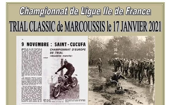 Je vous souhaite à tous une bonne et heureuse année 2021, hélas elle démarre déjà mal pour notre calendrier trial. En effet, vous aviez lu ou entendu que la saison débutait par 2 épreuves de Trial Classic :  Marcoussis le 17/01 et Saint-Chéron le 31/01.
