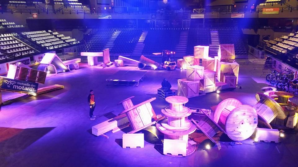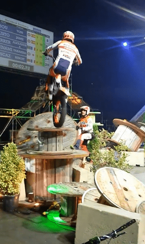 Benoit Bincaz sur la zone des caisses. On le retrouve sur la zone des palettes avec une énorme entrée. Alexandre Ferrer sur la même zone seulement 1 pied. Une grosse chute pour Benoît Bincaz lors du 2ème tour. On finit avec Toni Bou sur la zone de vitesse.