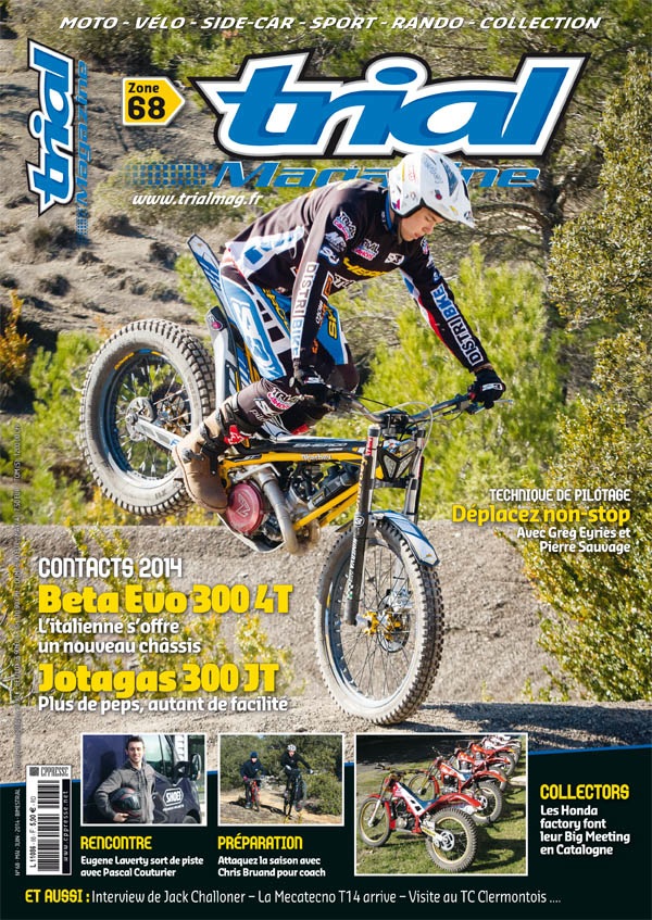 Au sommaire de ce numéro 68, un reportage sur le terrain de jeu du Trial Club Clermontois, la présentation de l’attendue Mecatecno T14, l’autre 20 pouces, une rencontre/interview avec Jack Challoner, l’essai de la Beta 300 Evo 4T et celui de la Jotagas 300, un chouette port folio consacré au Telford Show, un reportage sur le rassemblement des Pata Negra chez Jordi Pascuet et un portrait d’Eugène Laverty, pistard de talent, trialiste à ses heures et protégé de Pascal Couturier… Sans oublier la suite du programme de préparation physique et la leçon de pilotage pour les plus sportifs d’entre vous, et toutes les rubriques habituelles.