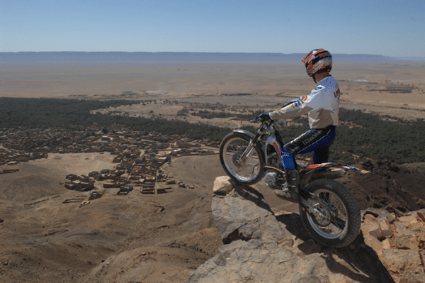 Zagora, porte du désert où l’ocre domine, et où jadis partaient les caravanes vers Tombouctou, sera le lieu de prédilection. Au Nord de Zagora, relief escarpé et aride, des roches de toutes tailles et de toutes formes semblent avoir été posées là pour le bonheur des trialistes.