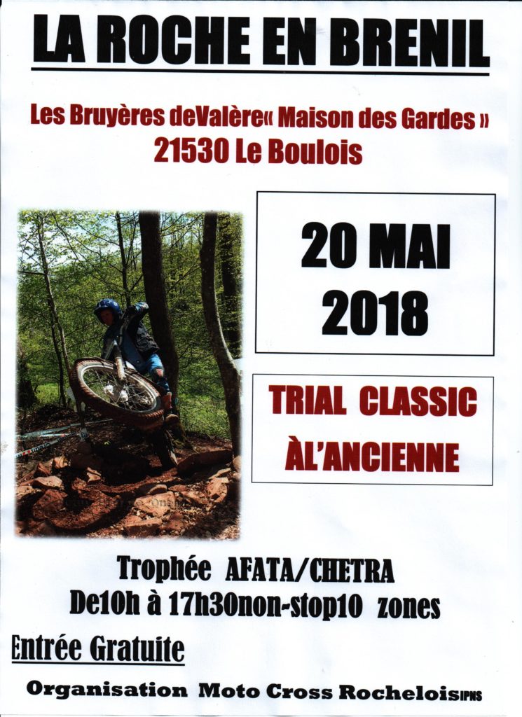 « Le dimanche 20 mai 2018 se déroulera le trial de La Roche en Brénil (21).