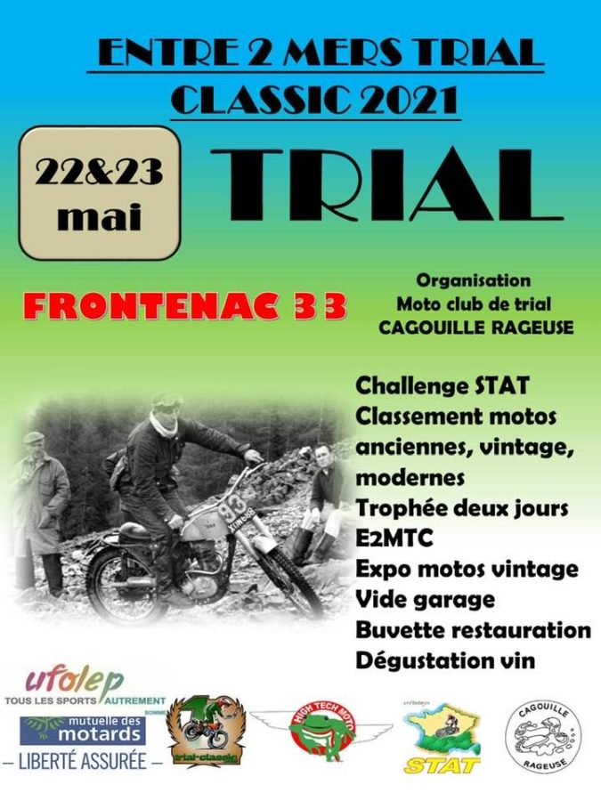 De plus, après la satisfaction enregistrée auprès des participants de la première édition de l’E2MTC (Entre Deux Mers Trial Classic) de juin 2019, le moto-club « Cagouille Rageuse » de Frontenac réitère en organisant l’épreuve en 2021.